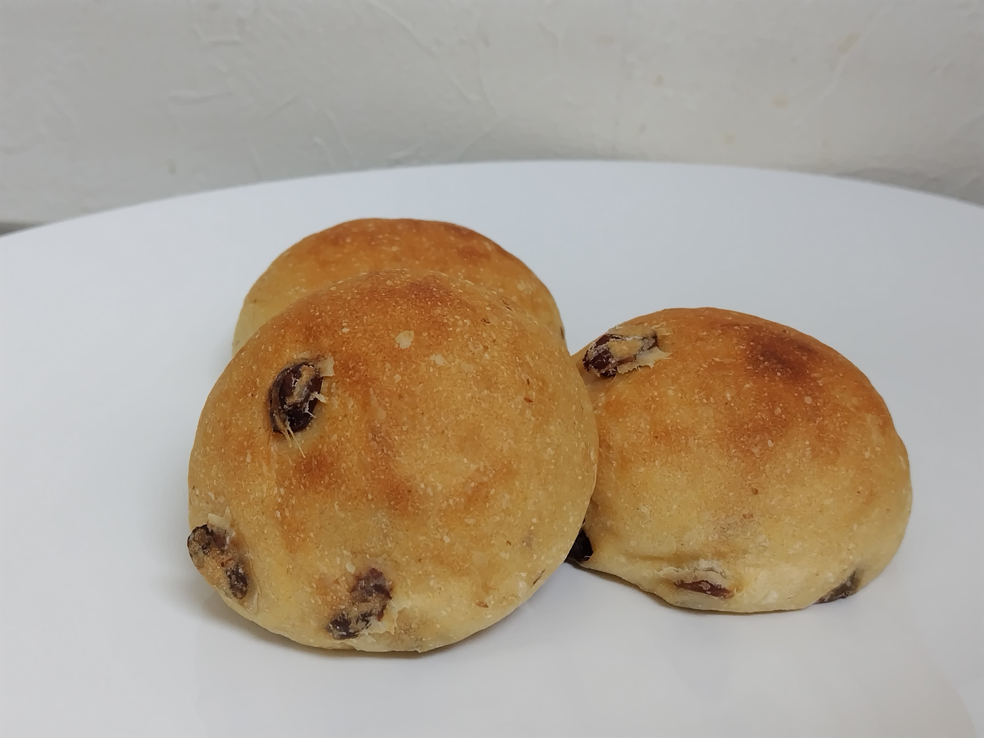 原材料名: 小麦粉(北海道産)、レーズン、ブラウンシュガー、無塩バター、脱脂粉乳、穀物酢、パン酵母、塩、キトサン、サイリウム/アルギン酸ナトリウム、クエン酸(原材料の一部に、小麦、乳成分、カニを含む)